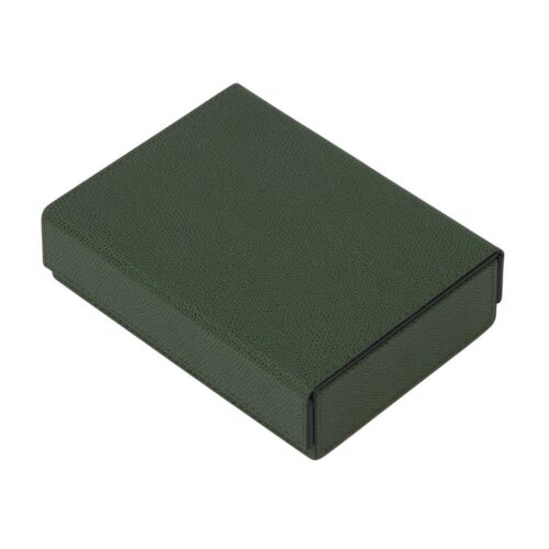 Wood case covered finely woven rattan featurig with magnetic closing and leather handles. Leather inlaid playing surface (it is possible to choose different colors). Includes a set of standard dice, a doubling cube and maple (light) and walnut wood (dark) draughts featuring leather inserts.