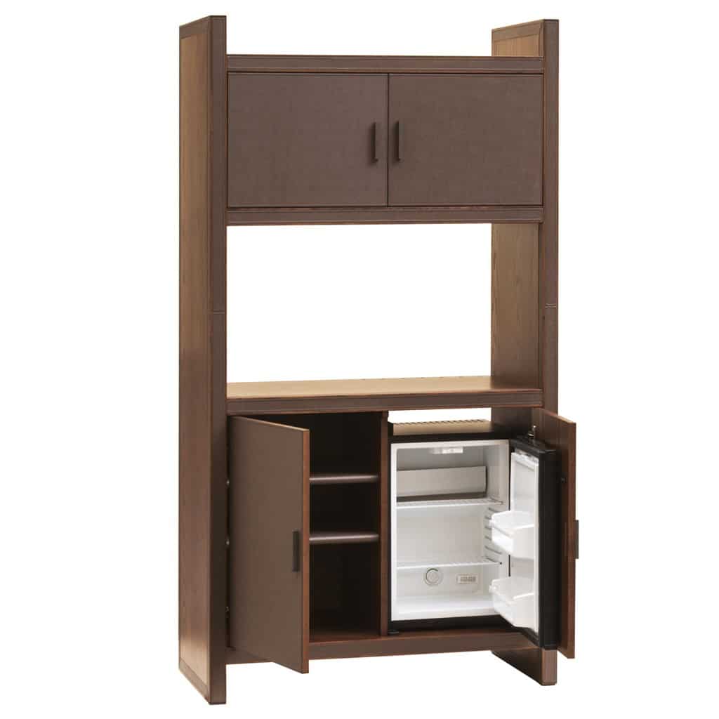 Bookshelves and cabinet equipped with fridge, coffee machine or other accessories. Suitable for home, hotel, office, yacht. Internal wall to contain and hide the cables of the various accessories. Size: 100×55 cm – h. 200 cm