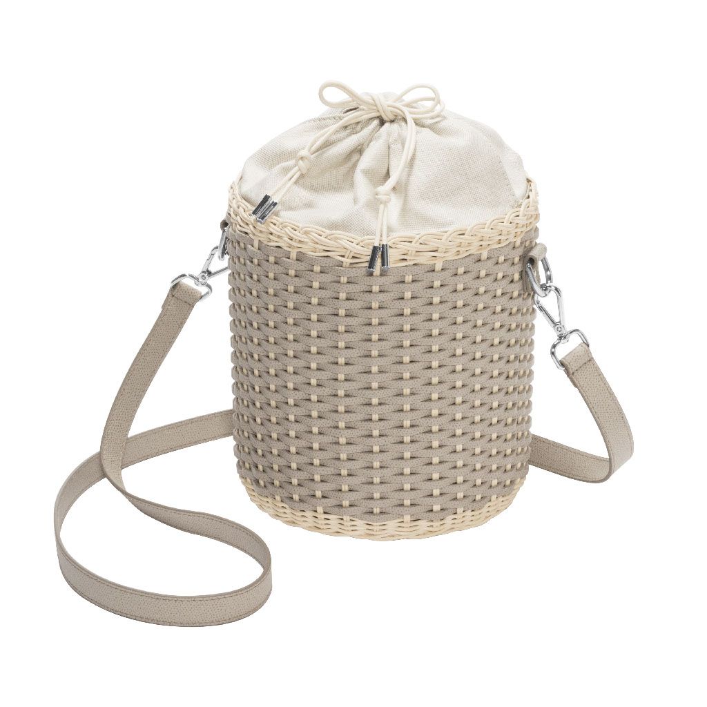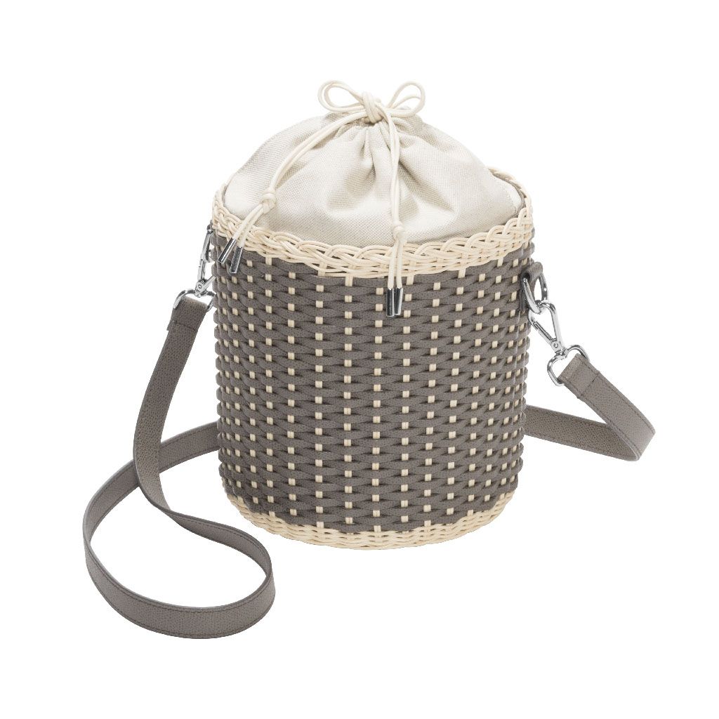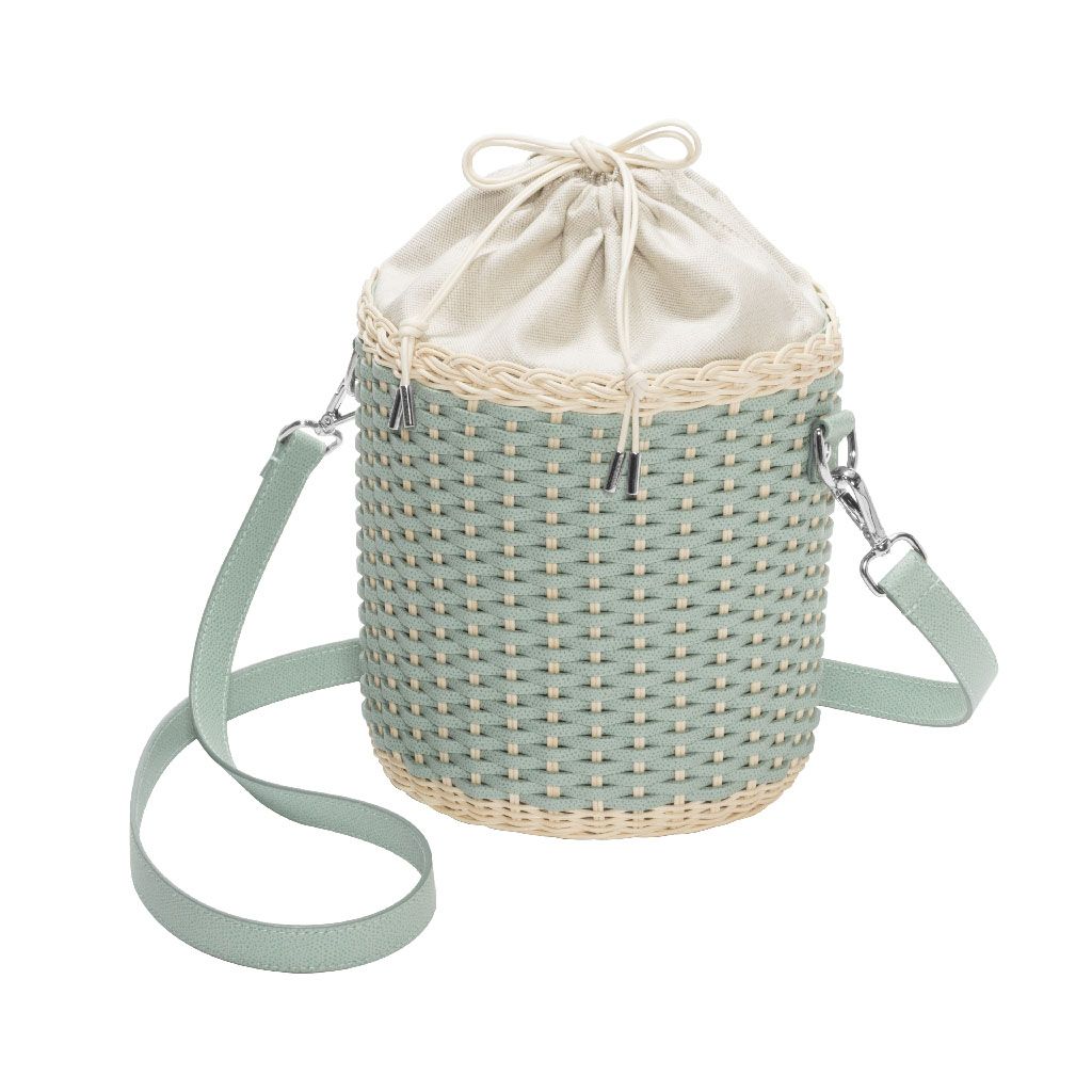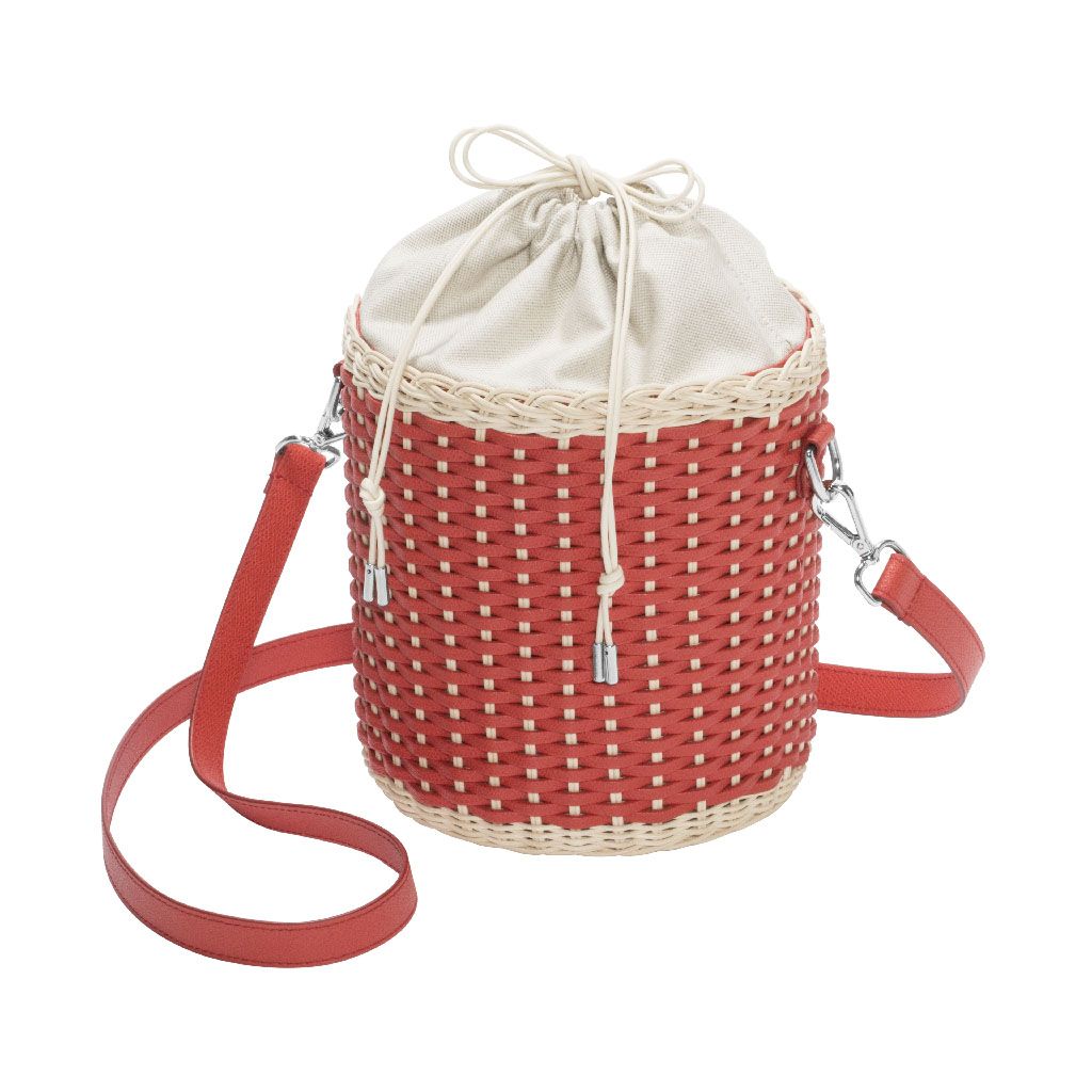 Made with the finest woven leather and rattan, this collection of bucket bags boasts a casual yet sophisticated attitude: the elegant shiny calfskin and the gentle freshness of rattan complement each other perfectly. The structured basket style reveals, when opened, a cotton lining featuring a leather drawstring closure which adds a fresh touch. The nartelle bucket bags can either be carried with a single short leather handle or with a long leather strap according to one’s taste. Size: ΓΈ 22. 5 cm – h. 22. 5 cm