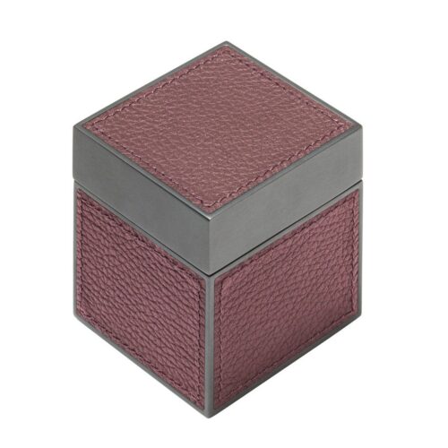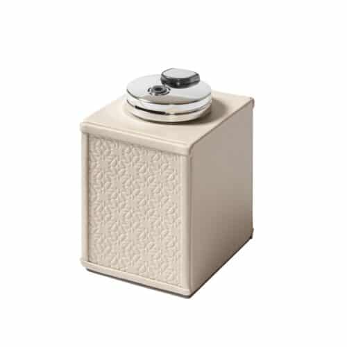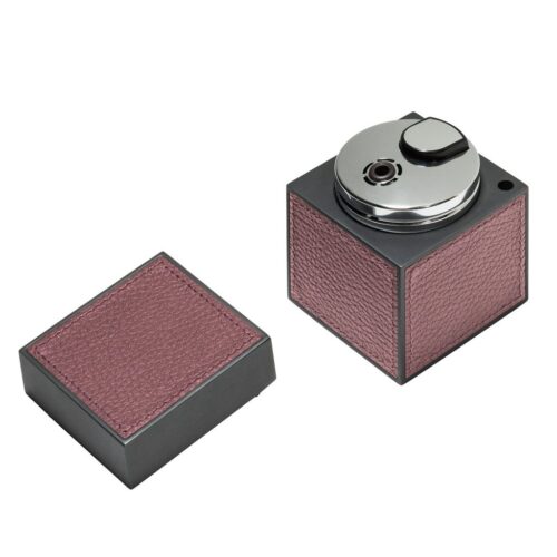 Handcrafted wood base covered in leather. Basin and cigar holder in metal chrome. Size: 16,5×7,5 – h. 4 cm