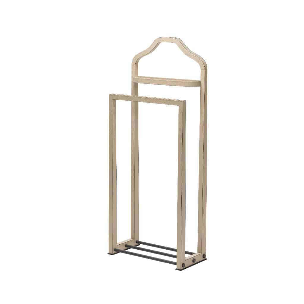 Leather-covered wood structure covered with metal inserts available in different finishes. Provided with a fixed valet tray. Size: 45. 5 x 23. 5 cm – h. 109. 5 cm