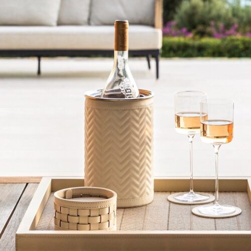 Metal covered in leather. Different sizes available.