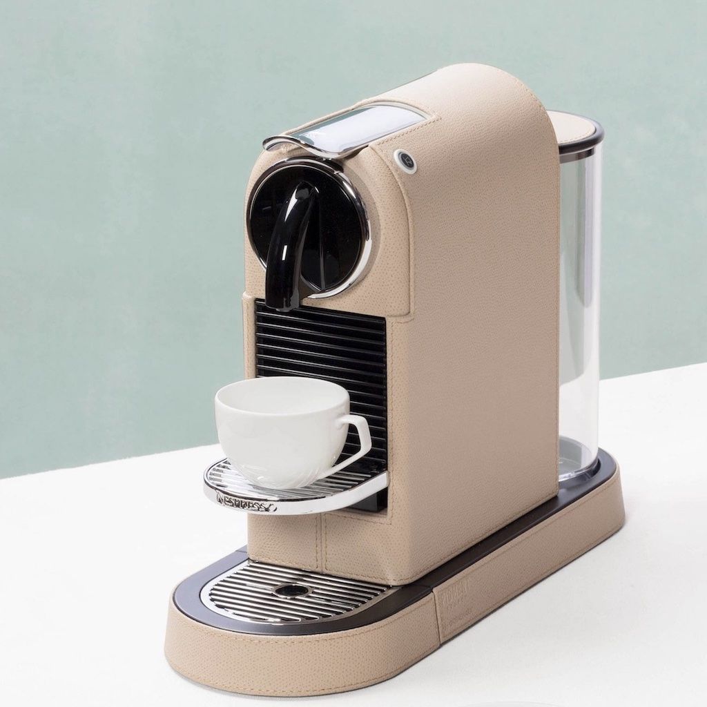 Simplified version for hospitality. Leather-bound Nespresso machine.