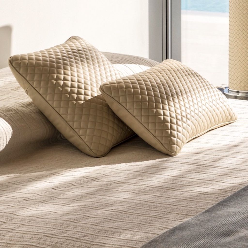 Leather cushion, quilted diamonds finish.