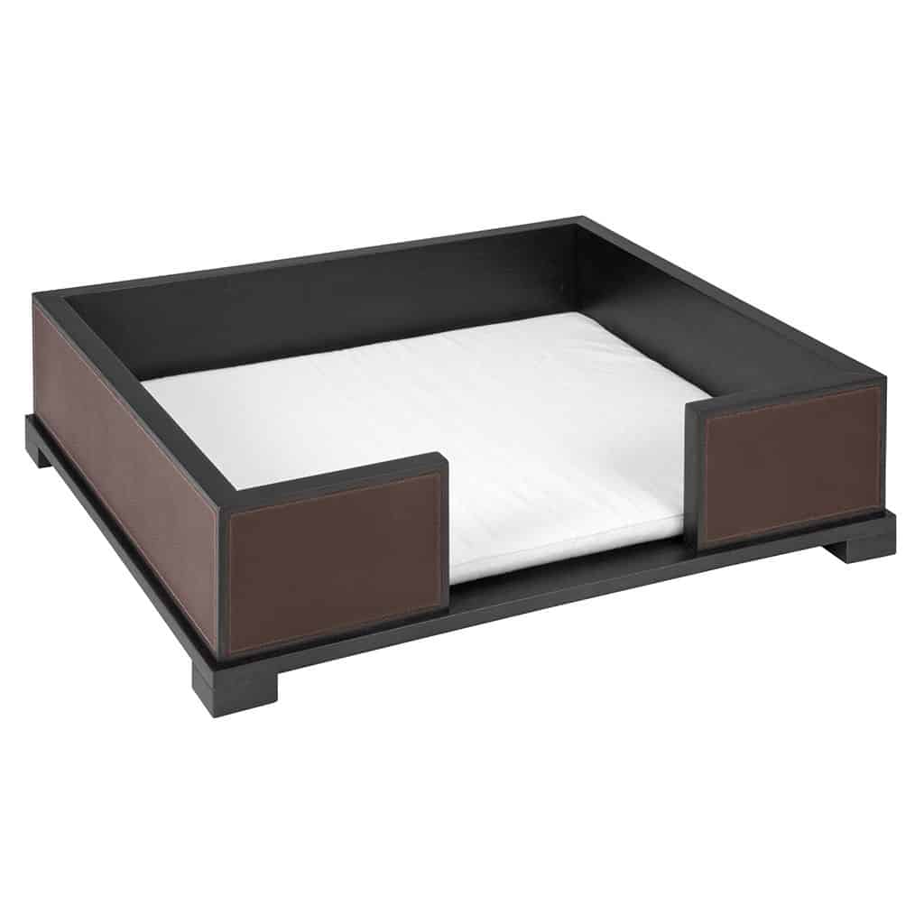 Oak frame (available in three finishes) with embedded leather on the outside. Comes with pillow and removable cushion cover. Different finishes and sizes available.