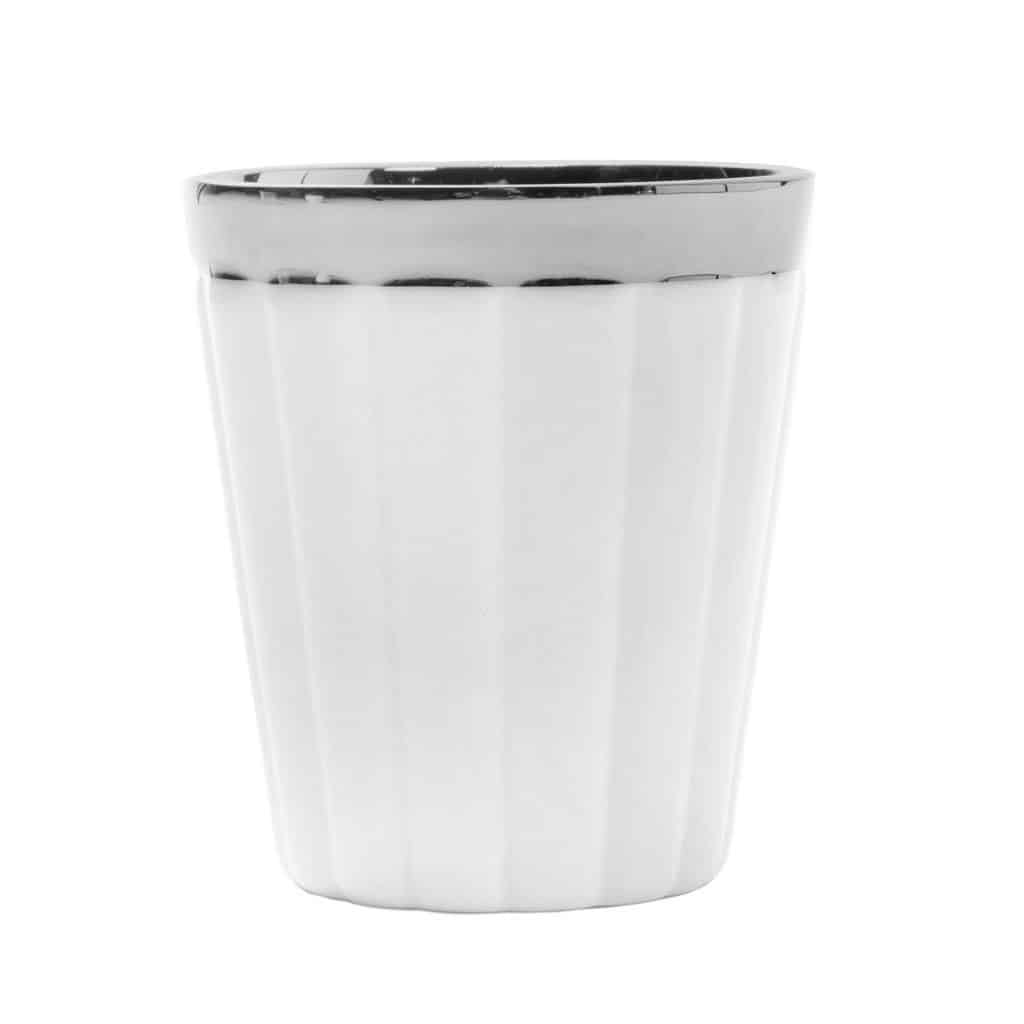 Espresso cup born from the combination of wafer-thin porcelain and the finest precious metal. Size: ø 5,7 – h. 6,5 cm