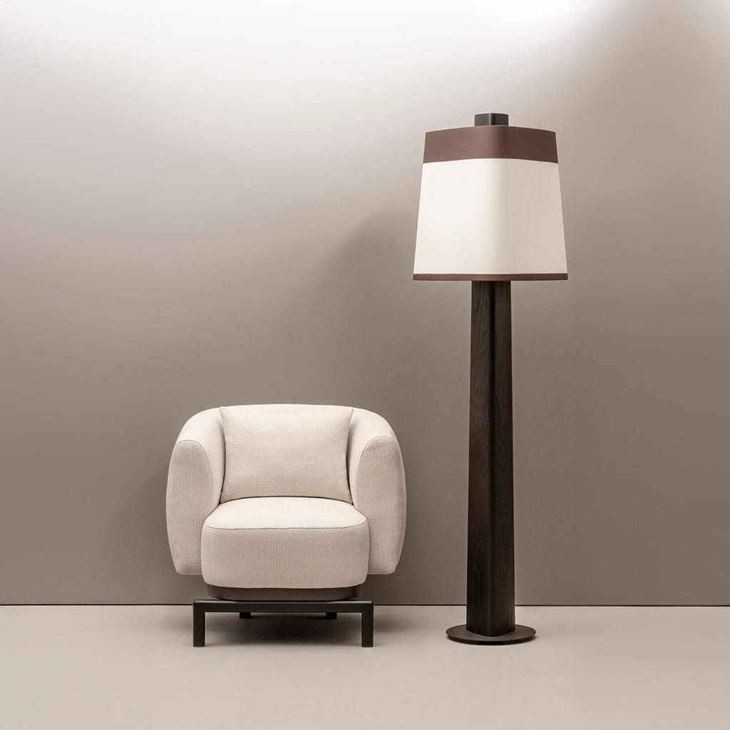 Materials: wood stem (the wood finish can be either dark-stained Canaletto walnut or wenge) and burnished bronze base.