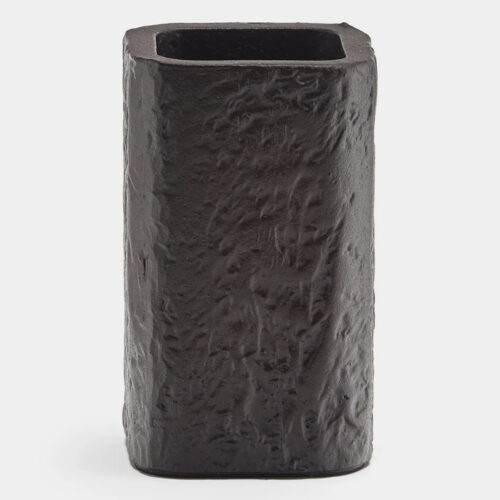 Toothbrush covered with quilted herringbone padded leather and boasts a chrome or gold metal finish. Size: ø 9 cm – h. 13 cm