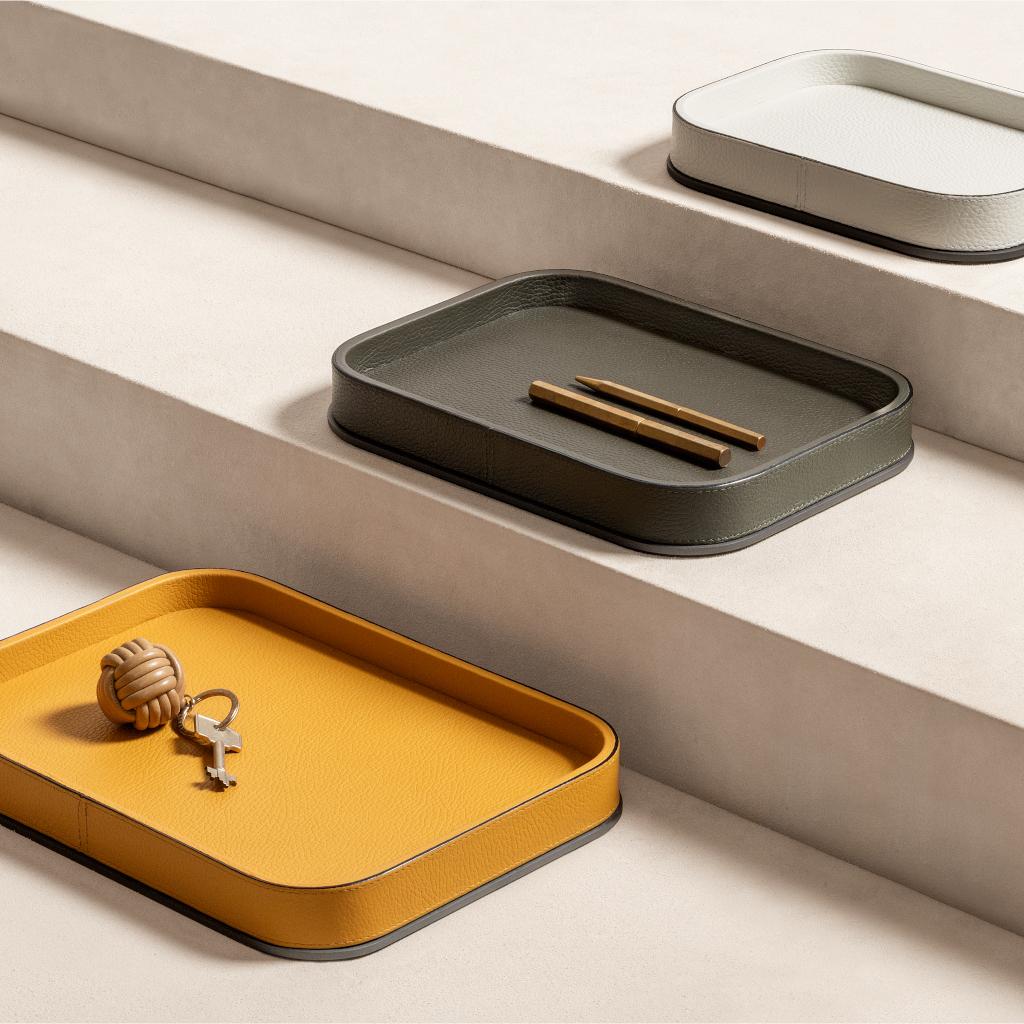 LEATHER & METAL RECTANGULAR VALET TRAY – POLO
