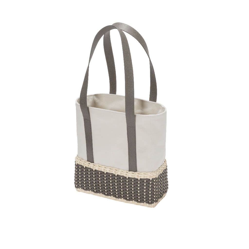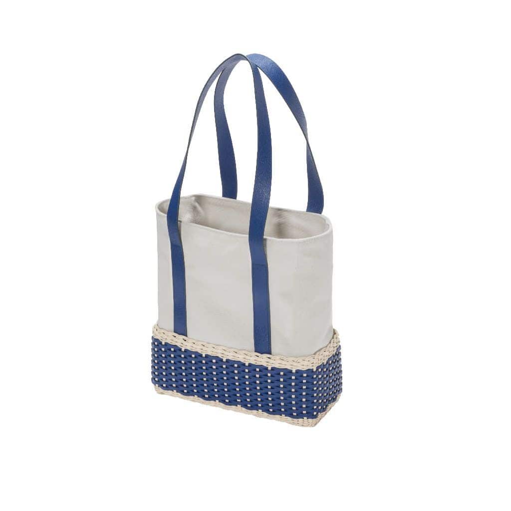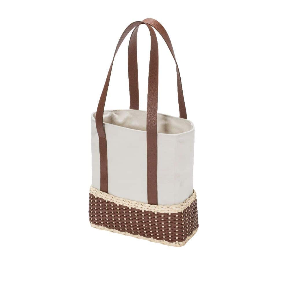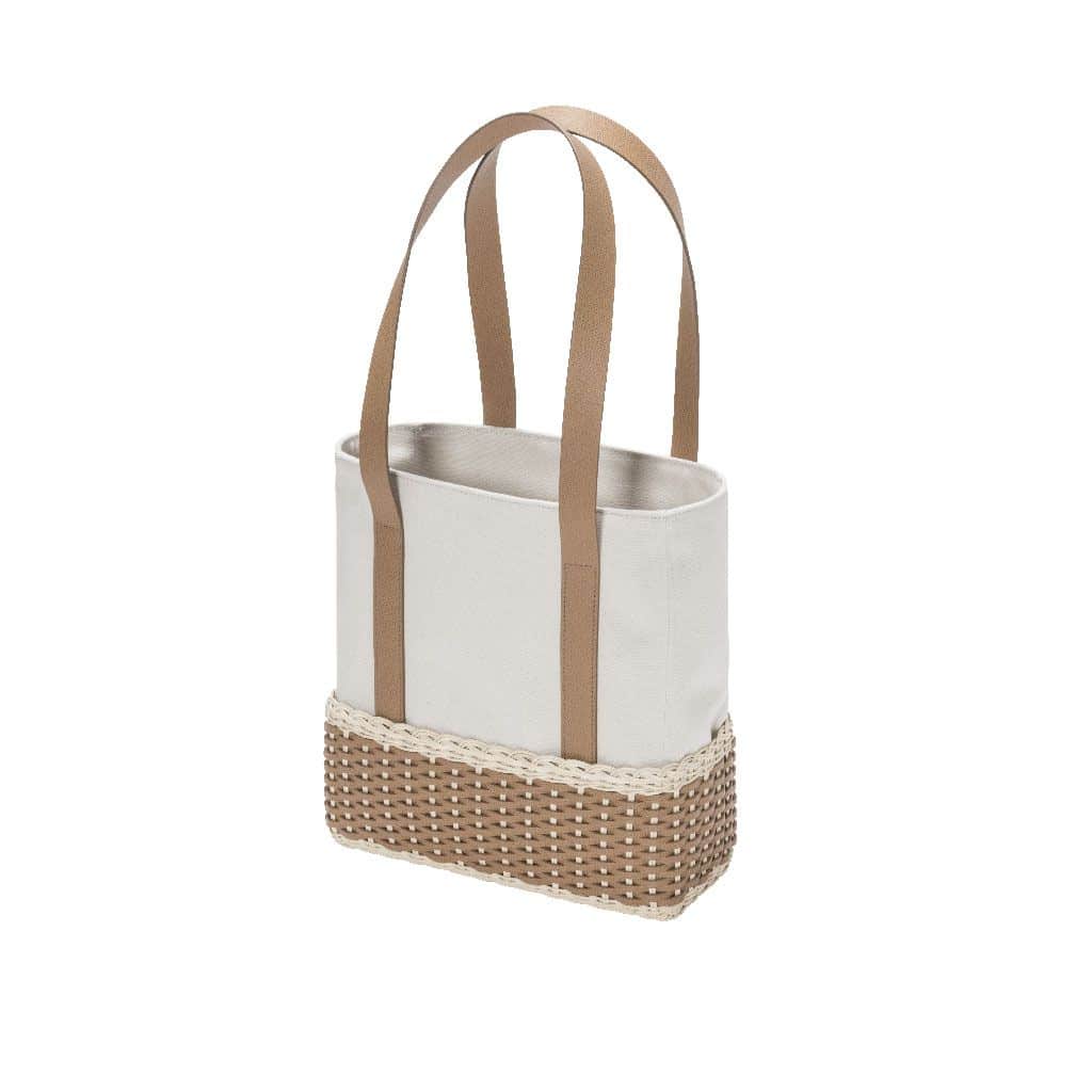 This collection of shopping bags boasts a simple yet sophisticated design able to enhance the quality of materials: the rigid base, made of the finest woven leather and rattan, is combined with a soft, cream-colored cotton lining. A pair of long handles made of shiny calfskin elegantly characterize the piece not only as a functional part of the structure,but as a graphic distinctive feature. Size: 30 x 13 cm h. 30 cm