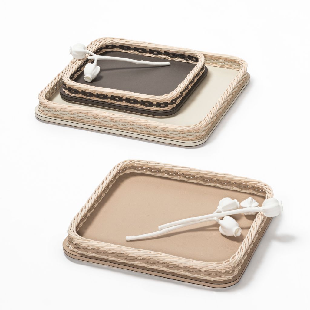 LEATHER&RATTAN TRAY SQUARE – ORSAY