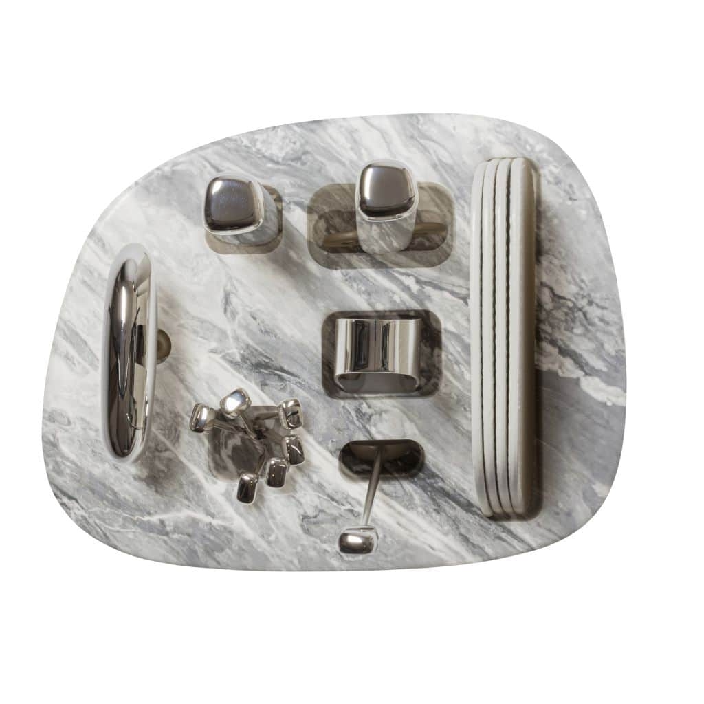 bardiglio cloudy marble – cast aluminium silver – deer print leather light grey