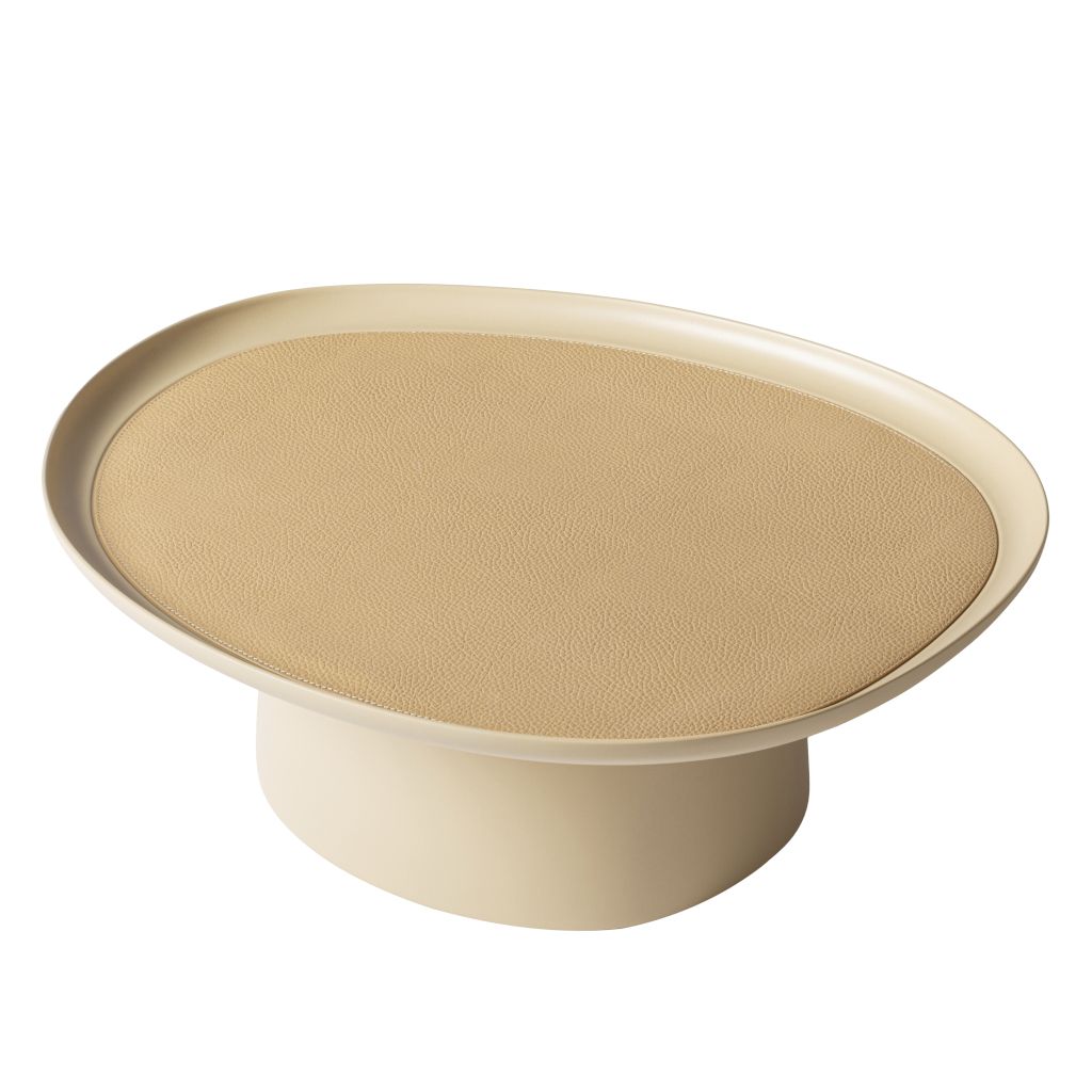 Sandblasted aluminium raised trays with removable leather inlay. Non-slip waterproof rubber base underneath. Color: deer print leather cappuccino – cast aluminum cappuccino.