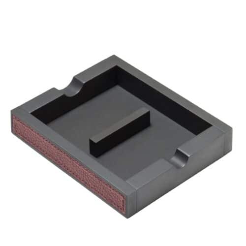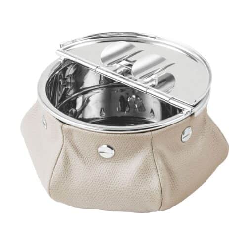 Ashtray with padded leather inserts featuring the elie saab monogram pattern and polished palladium details. The removable palladium plate ensures an easy cleaning.