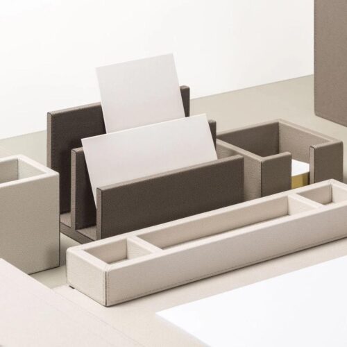 Desk set with padded leather inserts featuring the ELIE SAAB Monogram pattern.