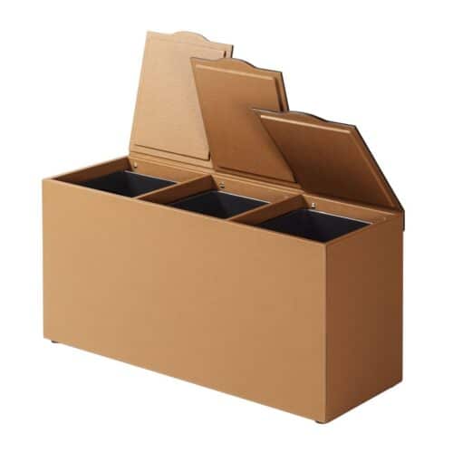 All leather structure with removable inner metal part. Different finishing available. Size: 27×20 cm – h. 31,5 cm
