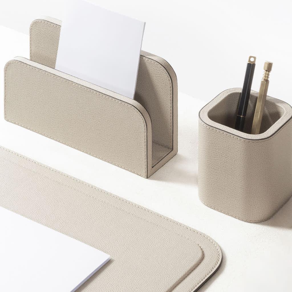 The iconic polo shape with rounded corners is now declined into a collection of desk accessories. All the pieces of this collection feature a wood structure preciously covered with the finest italian leather, whose natural charm i fully enhanced by these creations’ minimal geometric line.