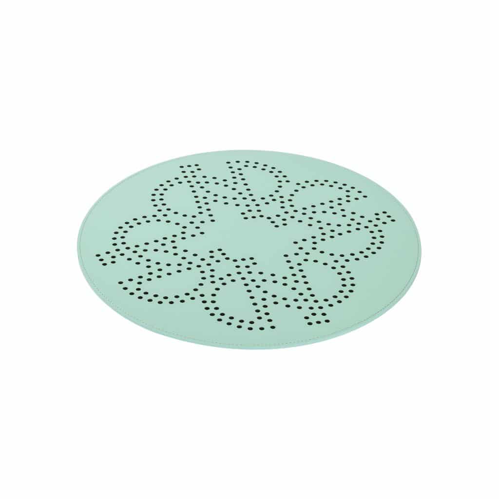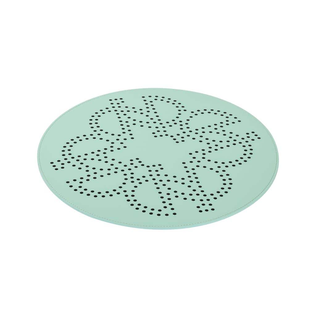 Finest regenerated reinforced leather placemat with water-resistant and UV-resistant finish, featuring a perforated ELIE SAAB Monogram.