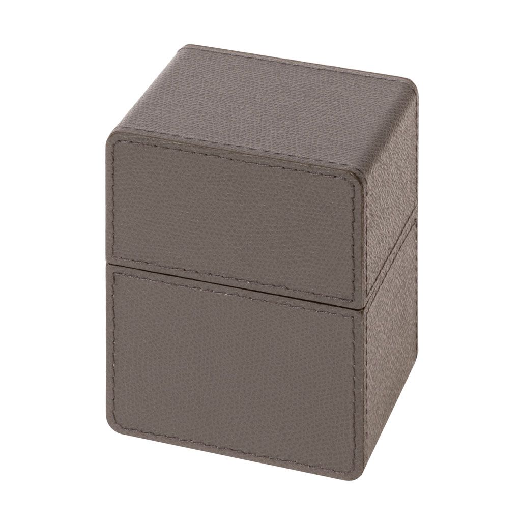 Handcrafted cedar case covered in leather. Includes 2 decks of playing cards. Size: 8,5×6,5 – h. 11 cm