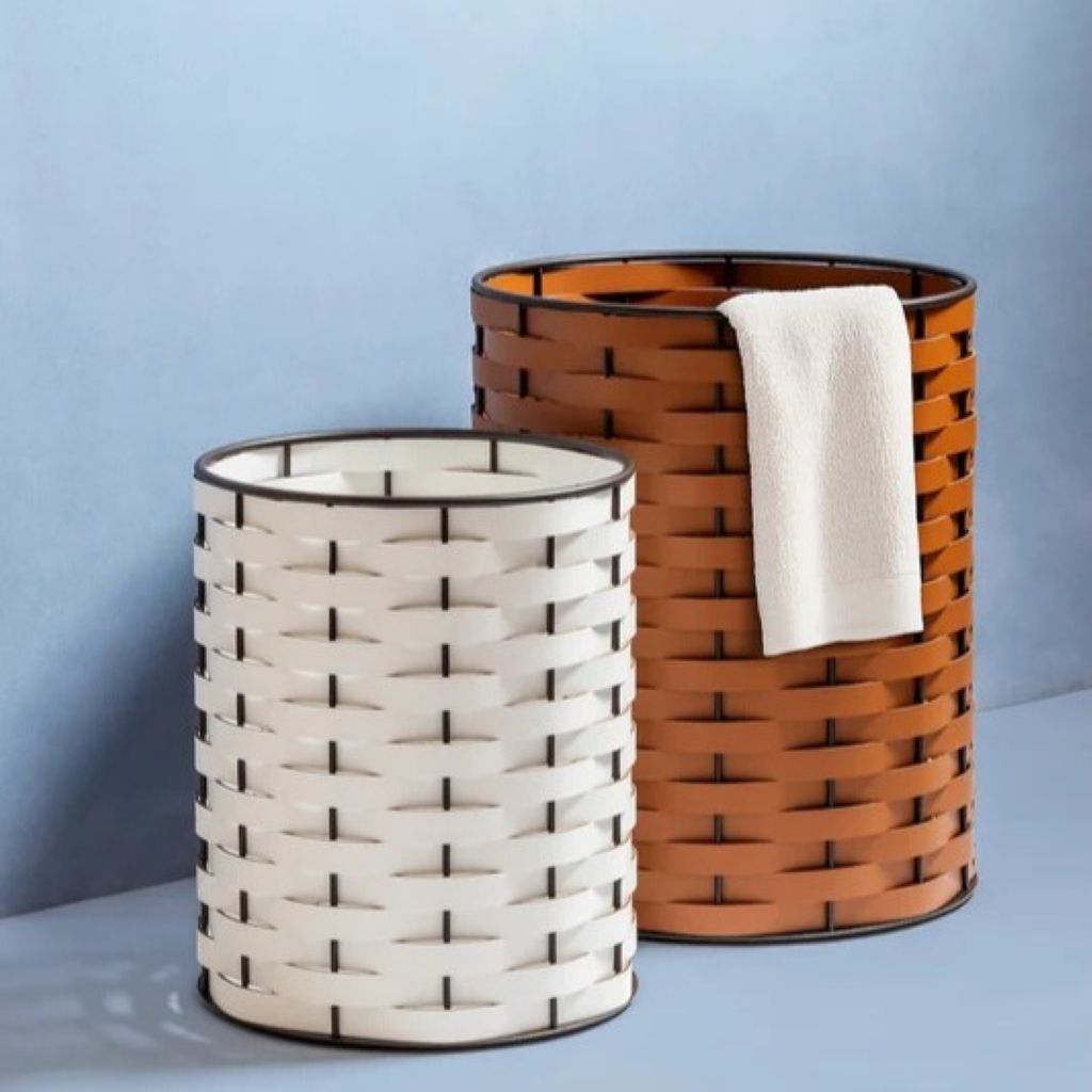 The Nassa collection is the perfect synergy of style and utility, redefining living spaces with its sophisticated allure. The framework of this series of storage baskets boasts a dark-stained aluminum structure and vibrant Tecnocuoio weaving, combining durability with contemporary elegance. This series presents more essential forms, free from superfluous curves, for a look that is pure, balanced, and timeless. Ideal for laundry, towels, magazines or everyday objects. Fit for both indoor and outdoor use. Non-slip waterproof rubber
