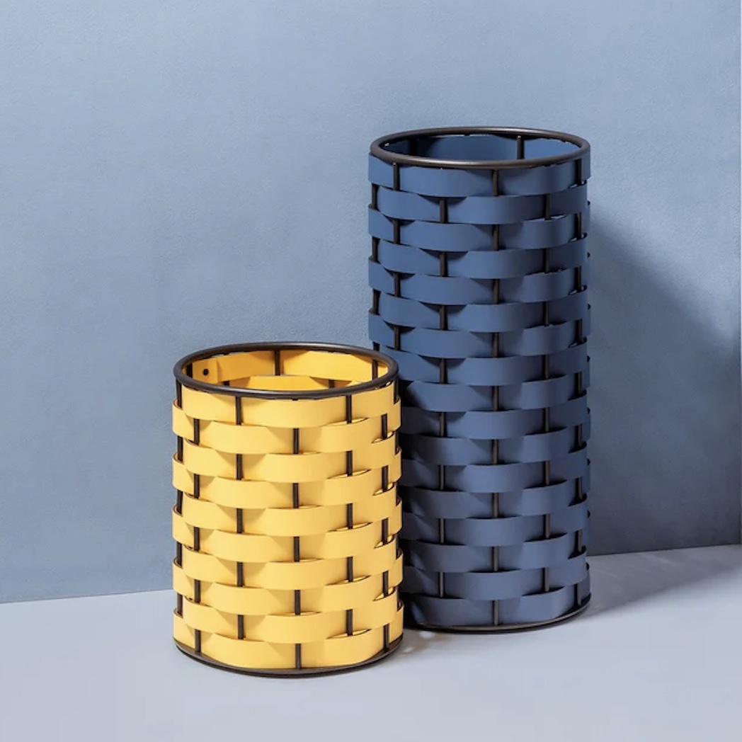 The Nassa collection is the perfect synergy of style and utility, redefining living spaces with its sophisticated allure. The framework of this series of storage baskets boasts a dark-stained aluminum structure and vibrant Tecnocuoio weaving, combining durability with contemporary elegance. This series presents more essential forms, free from superfluous curves, for a look that is pure, balanced, and timeless. Ideal for laundry, towels, magazines or everyday objects. Fit for both indoor and outdoor use. Non-slip waterproof rubber