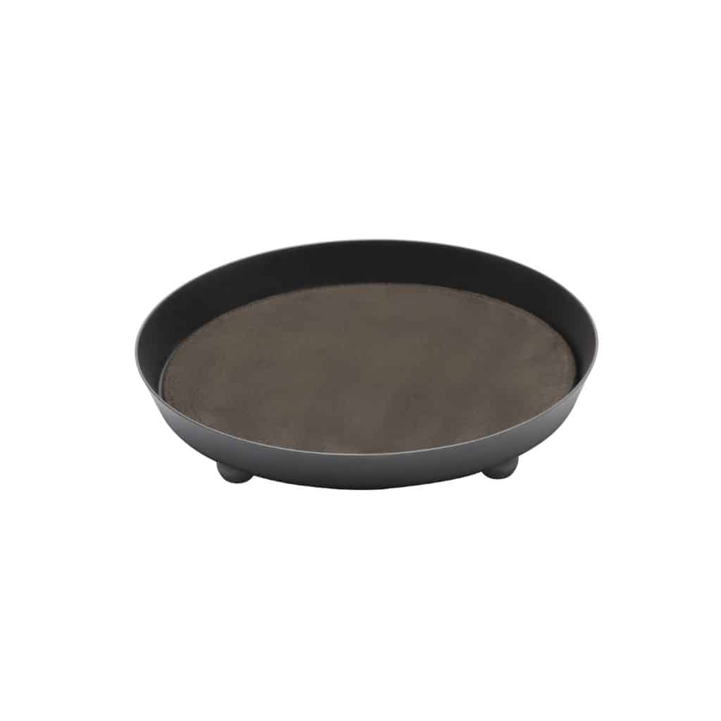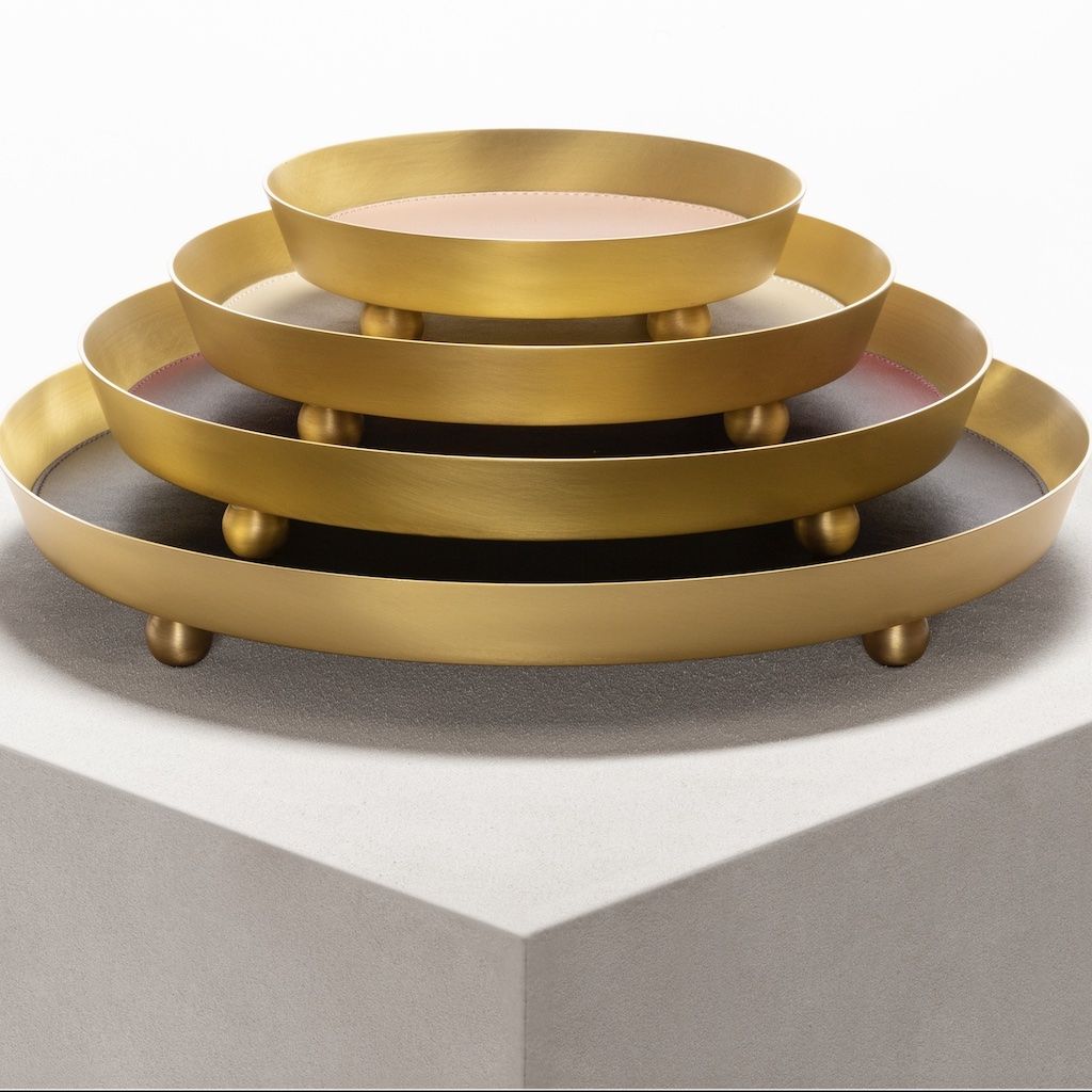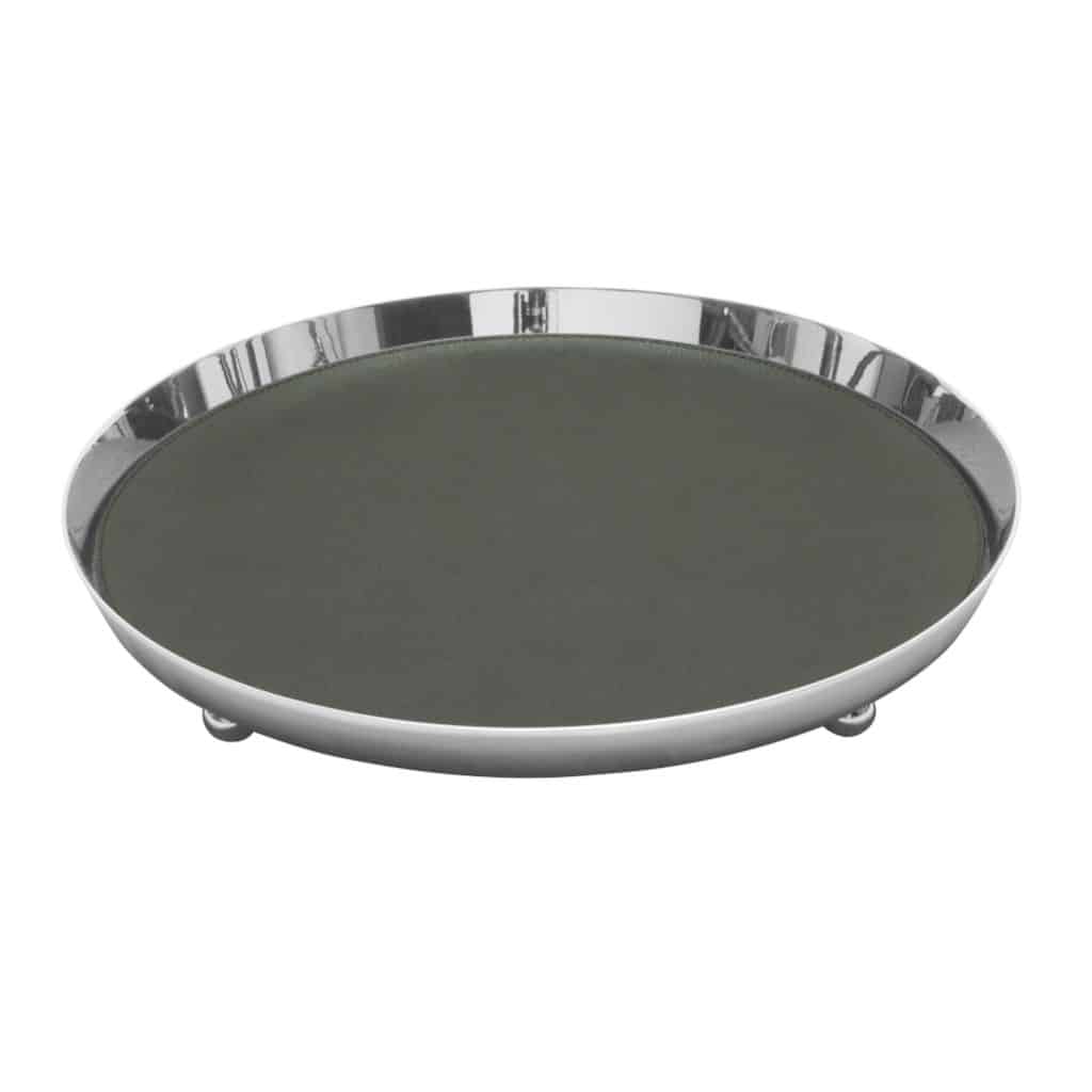 Metal structure with metal rounded feet available in different finishes: chome, brass, bronze. Provided with removable leather placemat.