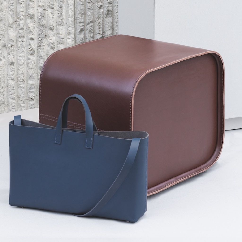 Water resistant saddle leather stool with padded surface.