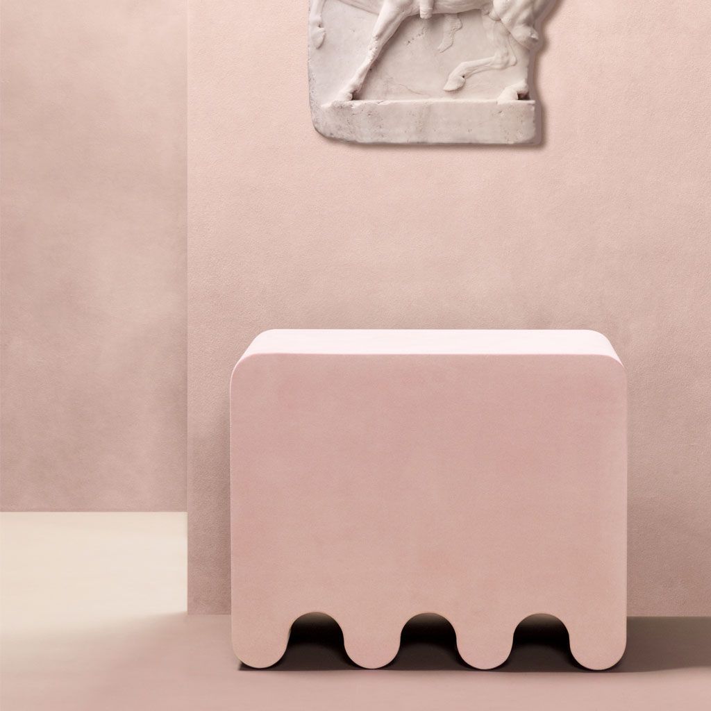Ossicle collection originates from both primal monolithic and contemporary minimal features entwined, while the lines are a reference to the ‘jeu des osselets’, which has rooths dating back to ancient greece and rome. Wood structure covered in leather. Size: 56×40 cm – h. 45,5 cm
