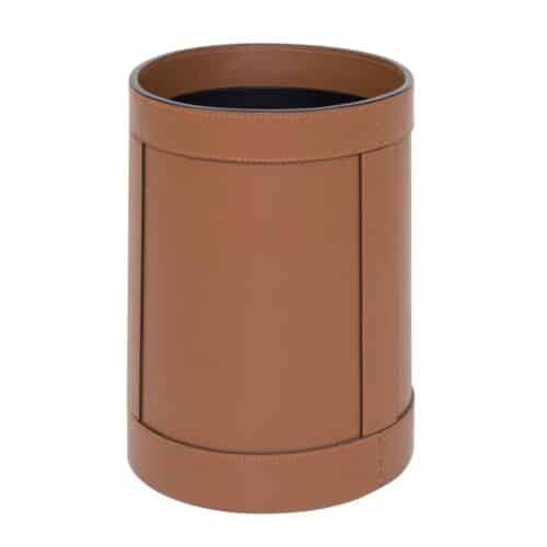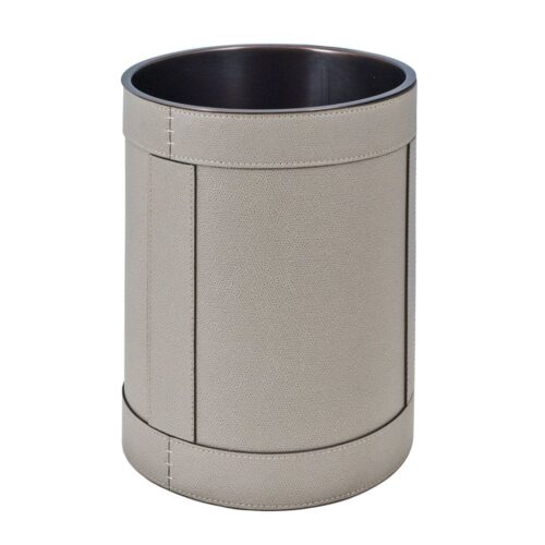 Handcrafted leather exterior with removable internal part made in polished an brushed metals: chrome, brass, bronze. Size: ø 13,5 – h. 19,5 cm.