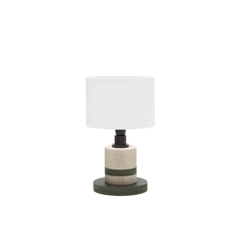 Dark-stained metal structure featuring overlapping decorative saddle leather and stone discs. Provided with a fine linen lampshade.