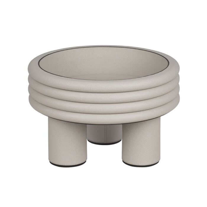 This line was inspired by the ‘stacked’ shape often seen at the base of some buildings in italy, as well as salvatore ferragamo’s celebrated heel. This selection have an identical recurring motif, layered and highlighted by deliberately knick legs, that lends a delicate graphic line. Size: ø 26 cm – h. 17 cm