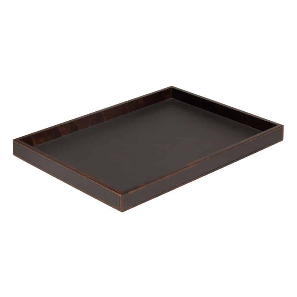 Handcrafted tray in maple with embedded leather sides and top. Different sizes and finish available.